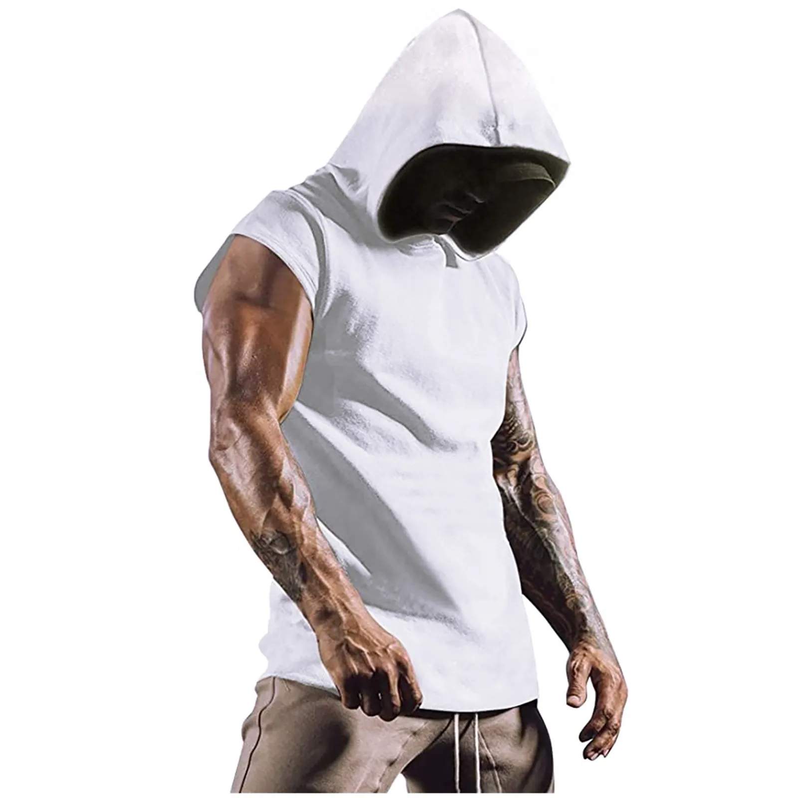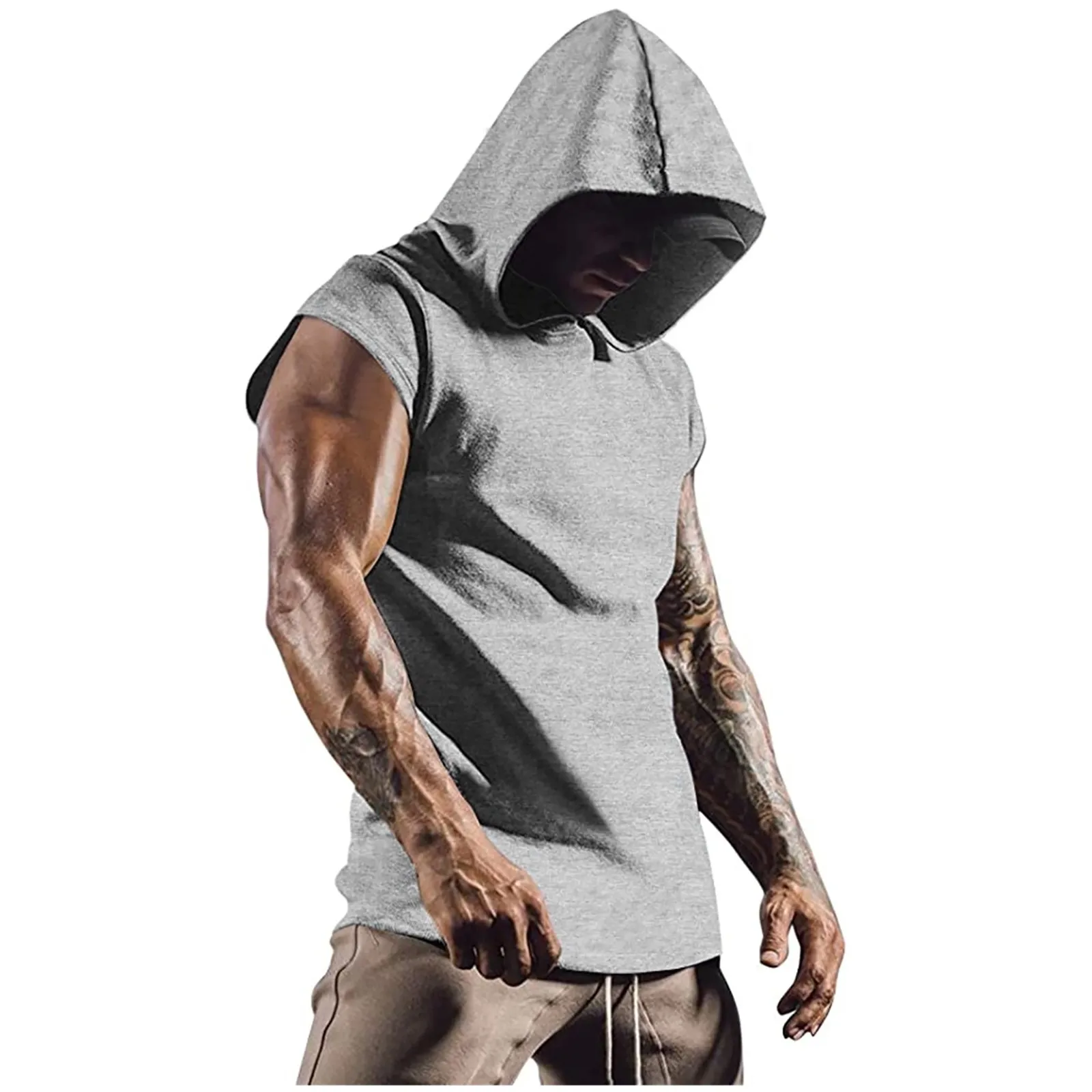 Men Fitness Muscle Sleeveless Solid Hooded Bodybuilding Tops